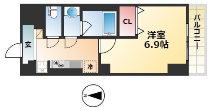 | 1K | 洋室 6.9畳 | 25.21㎡ |