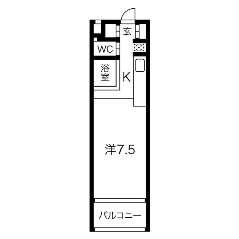 | ワンルーム | 洋室 7.5畳 | 25㎡ |