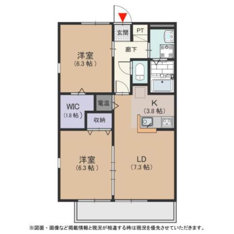 洋室 6.3畳 LD 7.3畳 K 3.8畳 |
