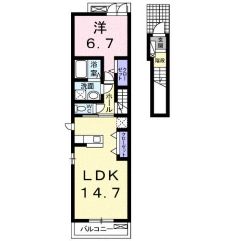 | 間取り詳細 | 洋室 6.7畳 、 LDK 14.7畳 |