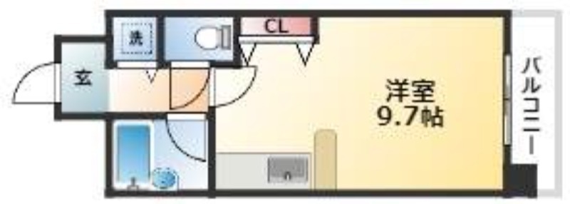 | 1K | 洋室 9.7畳 | 24.98㎡ |