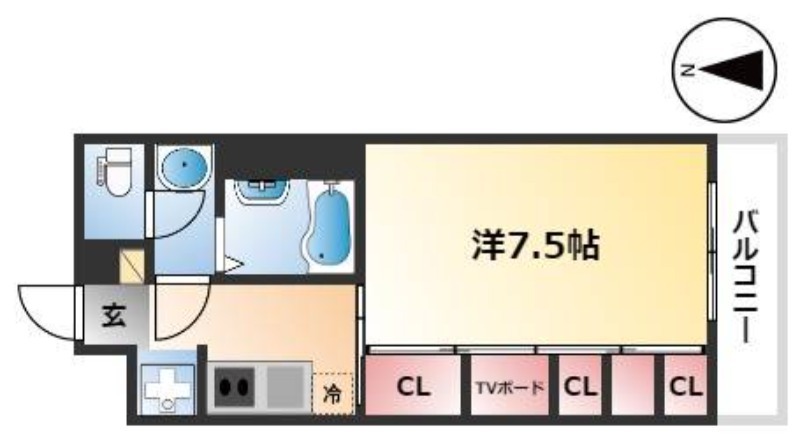 | 1K | 洋室 7.5畳 | 26.08㎡ |