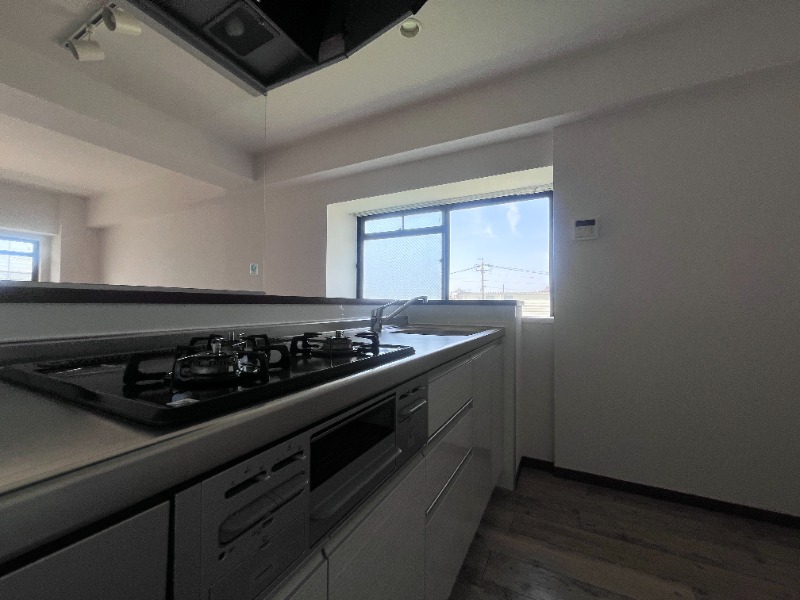 | 設備 | ガス(都市ガス)、インターホン(TVモニター付き)、ディンプルキー、専用ゴミ置き場(あり)、駐輪場、日当り良好、2面採光、南向きリビング、角部屋、通風良好、フローリング、全居室フローリング、出窓、ベランダ・バルコニー、クローゼット、クローゼット数(2)、下駄箱、バス・トイレ別(別室)、シャワー、追い焚き、脱衣所、給湯、洗面所独立、シャンプードレッサー、洗面所にドア、洗濯機置き場(室内)、コンロ設置済、コンロ口数(3)、コンロ種類(都市ガス)、グリル、システムキッチン、カウンターキッチン、対面キッチン、24H換気システム、BS | ||