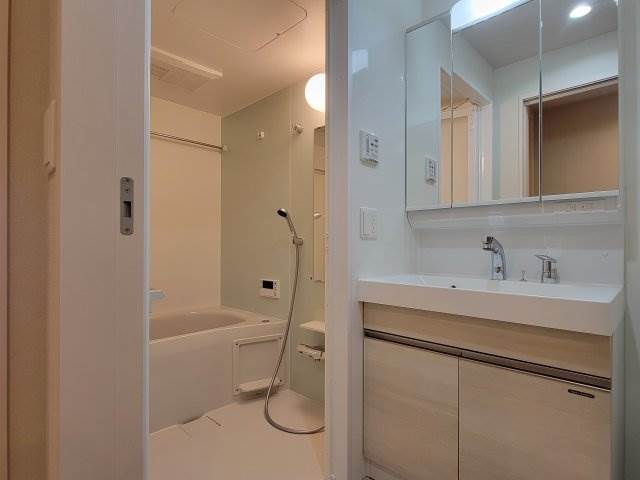 | 設備 | ガス(都市ガス)、インターホン(TVモニター付き)、カードキー、オートロック、宅配ボックス、専用ゴミ置き場(あり)、駐輪場、角部屋、フローリング、全居室フローリング、ベランダ・バルコニー、クローゼット、クローゼット数(1)、下駄箱、バス・トイレ別(別室)、シャワー、追い焚き、浴室乾燥機、脱衣所、給湯、温水洗浄便座、ウォームレット、洗面所独立、シャンプードレッサー、三面鏡付き洗面化粧台、洗面所にドア、洗濯機置き場(室内)、コンロ設置済、コンロ口数(2)、コンロ種類(都市ガス)、システムキッチン、エアコン、エアコン台数(1)、24H換気システム、光ファイバー、インターネット使用料無料 | ||