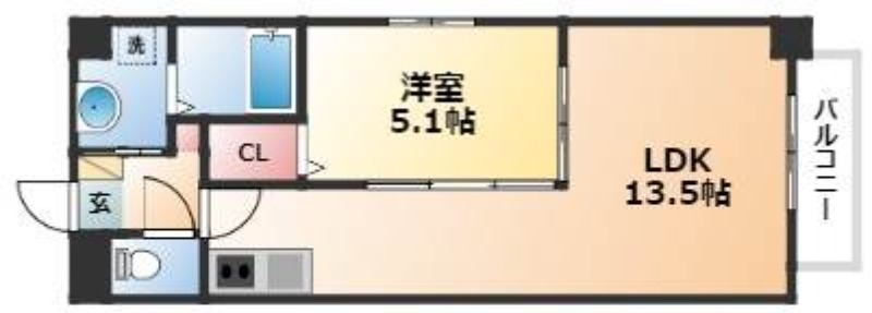 洋室 5.1畳 、 LDK 13.5畳