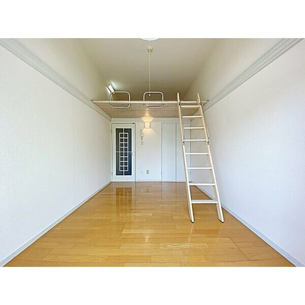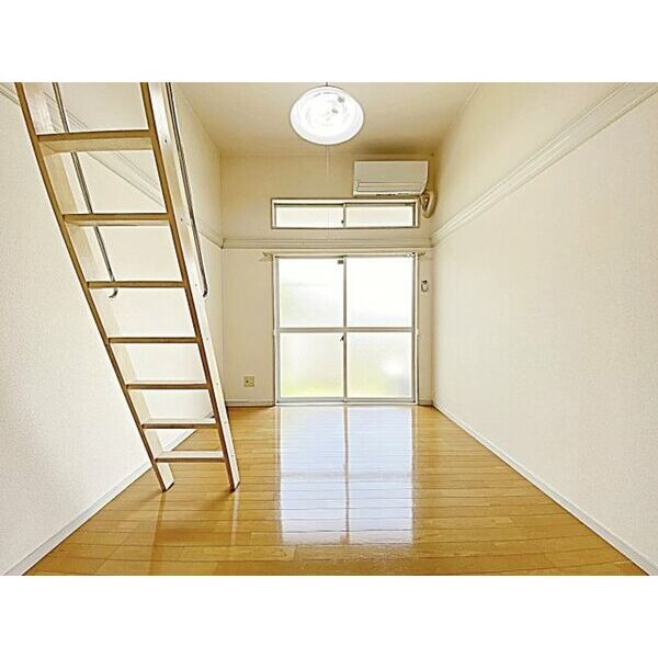 ガス(都市ガス)、フローリング、全居室フローリング、ロフト、ベランダ・バルコニー、収納スペース、クローゼット、クローゼット数(1)、全居室収納、バス・トイレ別(同室)、洗面台、コンロ設置済、コンロ種類(電気)、システムキッチン、エアコン、エアコン台数(1) |