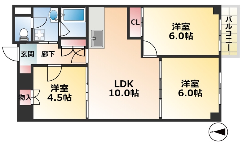 | 間取り詳細 | 洋室 6畳 、 洋室 6畳 、 洋室 4.5畳 、 LDK 10畳 |