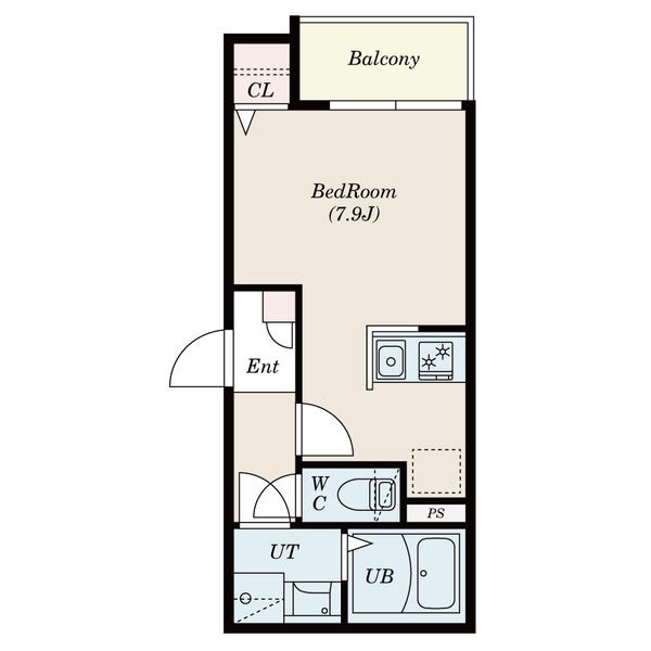| ワンルーム | 洋室 7.9畳 | 22.18㎡ |
