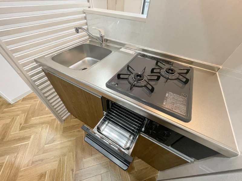 | 設備 | ガス(プロパン)、管理形態(巡回)、インターホン(TVモニター付き)、宅配ボックス、角部屋、デザイナーズ、フローリング、全居室フローリング、ベランダ・バルコニー、収納スペース、クローゼット、クローゼット数(1)、下駄箱、バス・トイレ別(別室)、シャワー、浴室乾燥機、脱衣所、給湯、温水洗浄便座、洗面台、洗面所独立、シャンプードレッサー、洗濯機置き場(室内)、コンロ設置済、コンロ口数(2)、コンロ種類(プロパン)、システムキッチン、カウンターキッチン、エアコン、エアコン台数(1)、BS、地デジ(UHF)、インターネット使用料無料 | ||