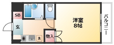 | 1K | 洋室 8畳 | 22㎡ |