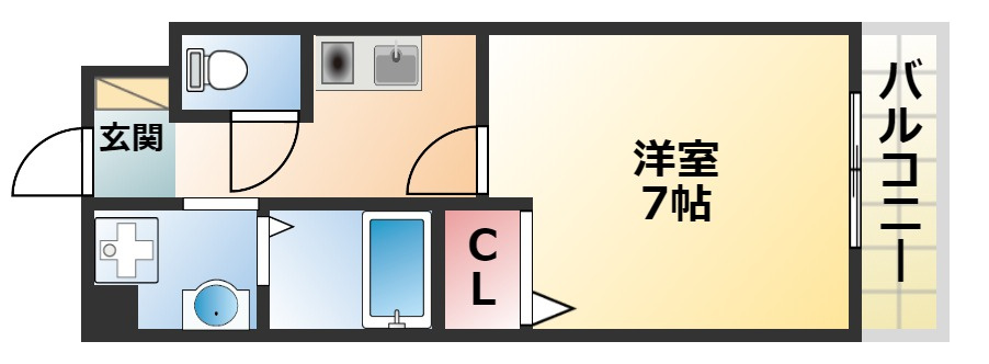 | 1K | 洋室 7畳 | 22.99㎡ |