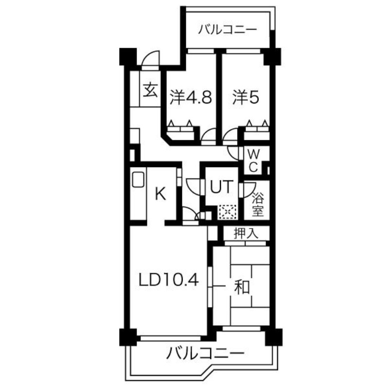 | 間取り詳細 | LDK 10.4畳 、 洋室 5畳 、 洋室 4.8畳 、 和室 6畳 |