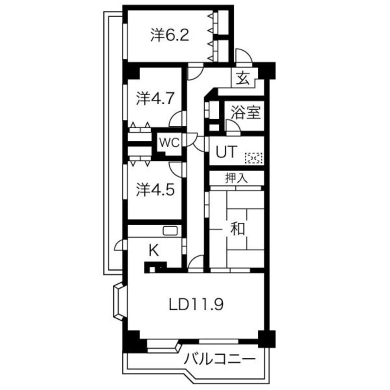 洋室 6.2畳 洋室 4.7畳 洋室 4.5畳 和室 6畳 |