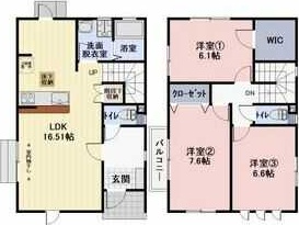 | 間取り詳細 | 洋室 7.6畳 、 洋室 6.6畳 、 洋室 6.1畳 、 LDK 16.51畳 |