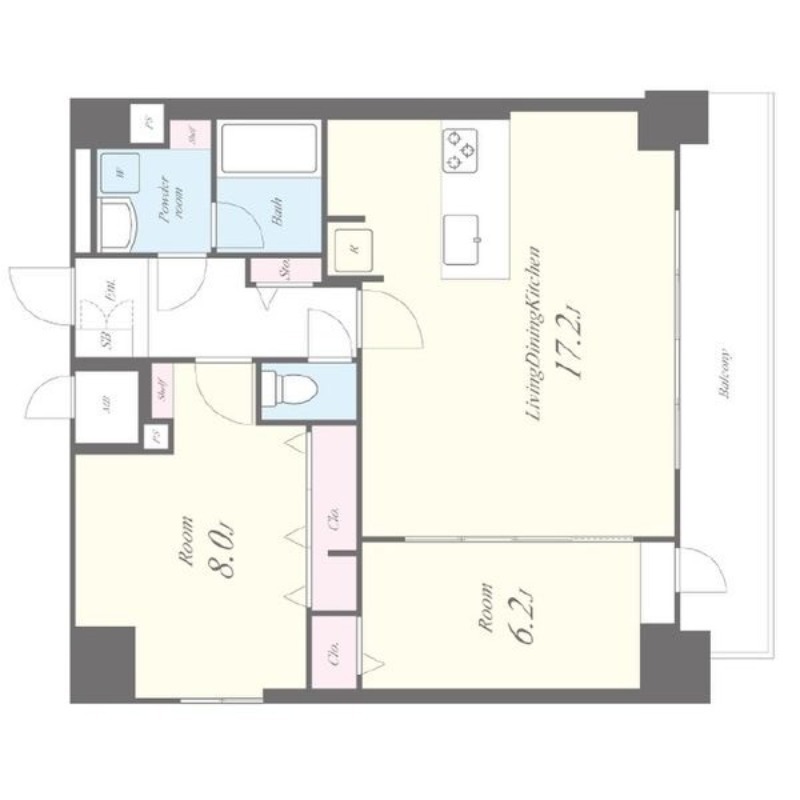 | 間取り詳細 | LDK 17.2畳 、 洋室 8畳 、 洋室 6.2畳 |
