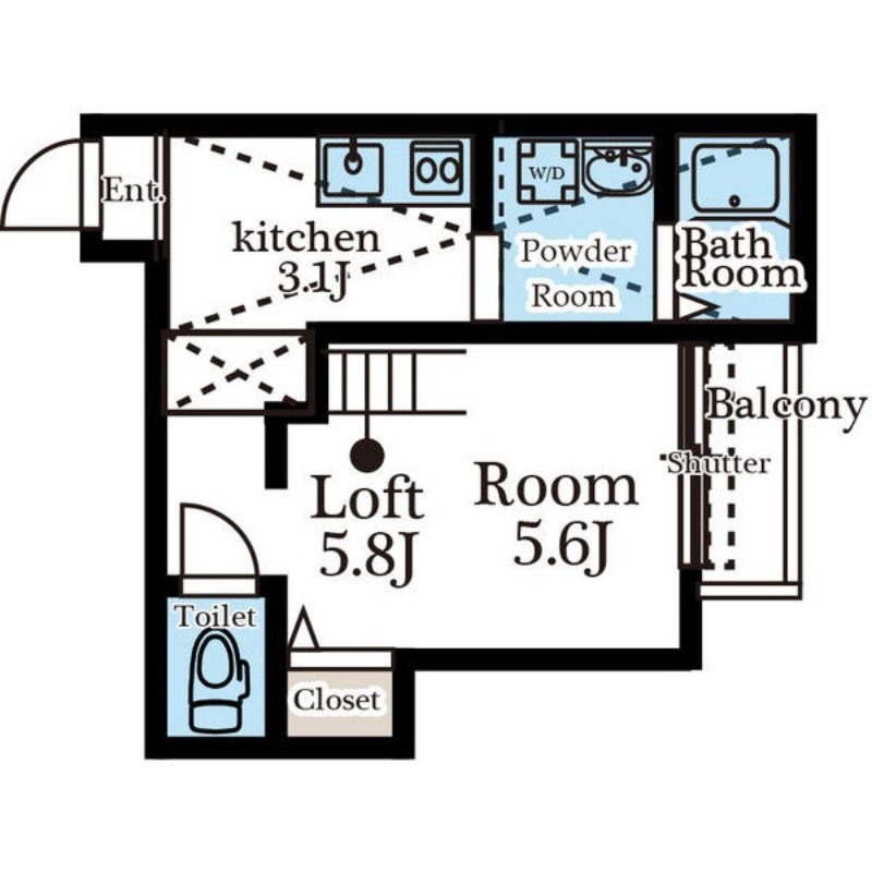 | 間取り詳細 | 洋室 5.6畳 、 K 3.1畳 |