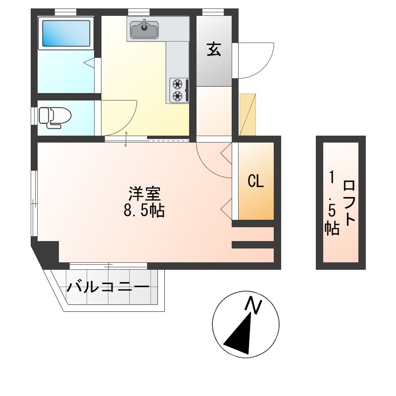 | 1K | 洋室 8.5畳 | 27㎡ |