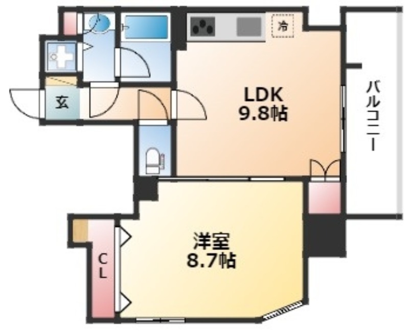 | 間取り詳細 | LDK 9.8畳 、 洋室 8.7畳 |