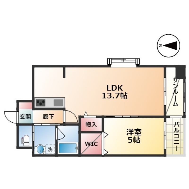 | 間取り詳細 | LDK 13.7畳 、 洋室 5畳 |