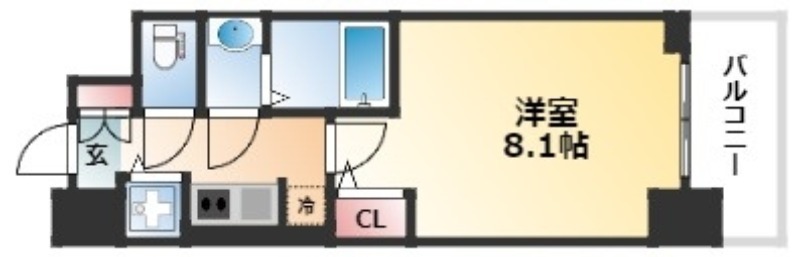 | 1K | 洋室 8.1畳 | 25.23㎡ |