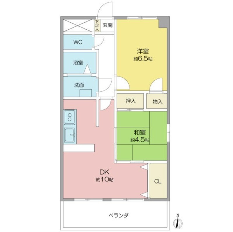 | 間取り詳細 | 和室 4.5畳 、 洋室 6.5畳 、 LDK 10畳 |