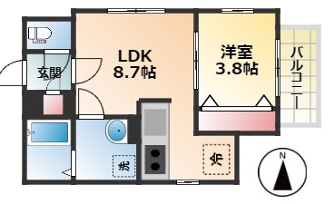 | 間取り詳細 | LDK 8.7畳 、 洋室 3.8畳 |