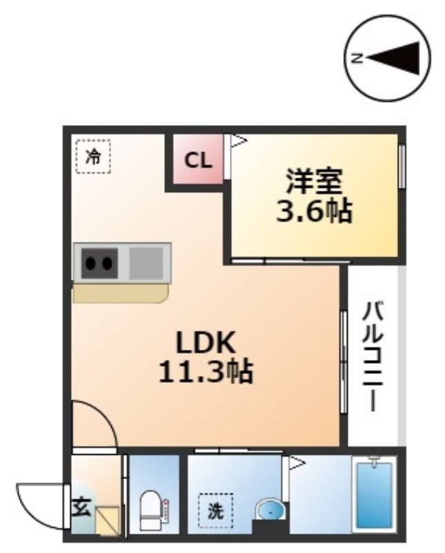 | 間取り詳細 | LDK 11.3畳 、 洋室 3.6畳 |
