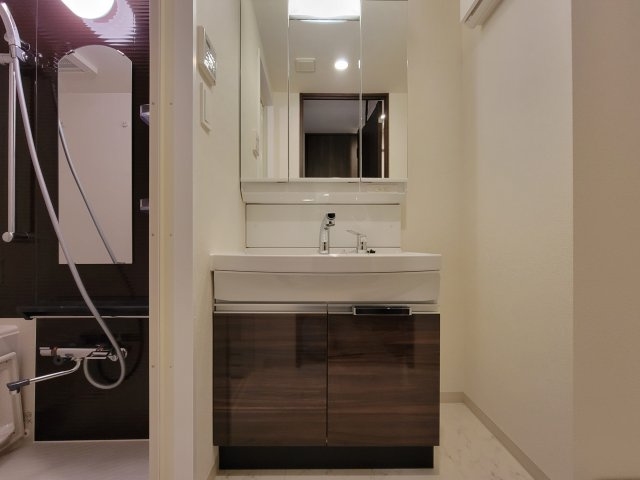 | 設備 | ガス(都市ガス)、インターホン(TVモニター付き)、防犯カメラ、オートロック、宅配ボックス、専用ゴミ置き場(あり)、駐輪場、バイク置き場、眺望良好、角部屋、ベランダ・バルコニー、収納スペース、クローゼット、クローゼット数(1)、下駄箱、バス・トイレ別(別室)、シャワー、追い焚き、浴室乾燥機、給湯、温水洗浄便座、ウォームレット、洗面台、洗面所独立、シャンプードレッサー、洗面所にドア、洗濯機置き場(室内)、コンロ設置済、コンロ口数(2)、コンロ種類(都市ガス)、システムキッチン、カウンターキッチン、エアコン、エアコン台数(1)、24H換気システム、BS、光ファイバー、インターネット使用料無料 | ||