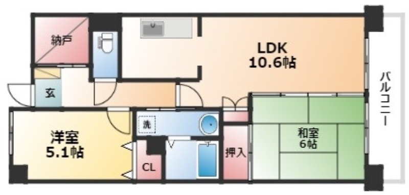 | 間取り詳細 | LDK 10.6畳 、 和室 6畳 、 洋室 5.1畳 |