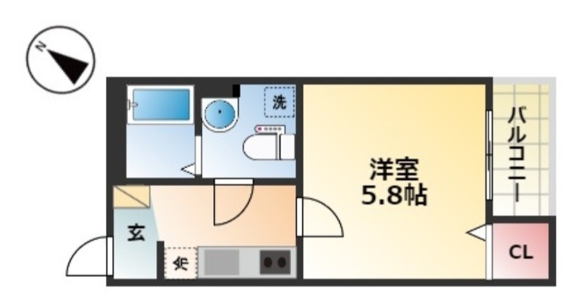 | 1K | 洋室 5.8畳 | 21.01㎡ |