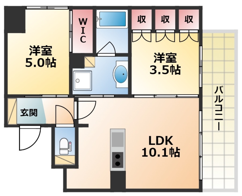 | 間取り詳細 | LDK 10.1畳 、 洋室 5畳 、 洋室 3.5畳 |
