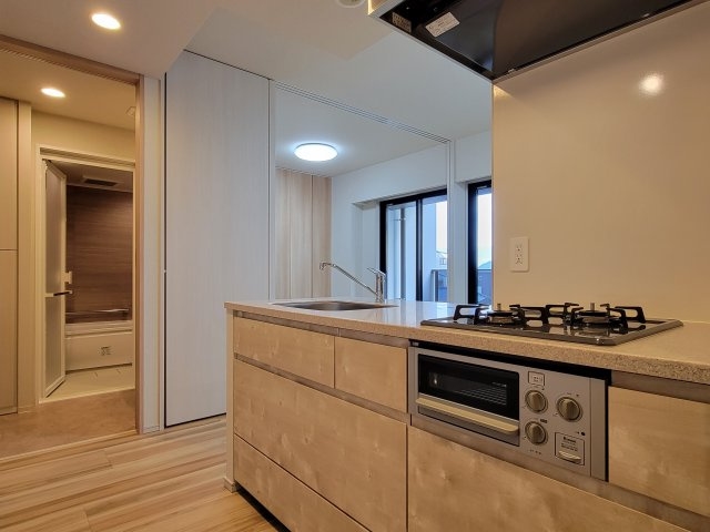 | 設備 | ガス(都市ガス)、インターホン(TVモニター付き)、オートロック、宅配ボックス、専用ゴミ置き場(あり)、駐輪場、バイク置き場、角部屋、フローリング、全居室フローリング、二重ガラス、照明器具、ベランダ・バルコニー、収納スペース、クローゼット、クローゼット数(1)、ウォークインクローゼット、ウォークインクローゼット数(1)、下駄箱、バス・トイレ別(別室)、シャワー、追い焚き、浴室乾燥機、脱衣所、給湯、温水洗浄便座、ウォームレット、洗面所独立、洗面所にドア、洗濯機置き場(室内)、コンロ設置済、コンロ口数(2)、コンロ種類(都市ガス)、システムキッチン、カウンターキッチン、対面キッチン、エアコン、エアコン台数(1)、24H換気システム、BS、CS、CATV、インターネット使用料無料 | ||