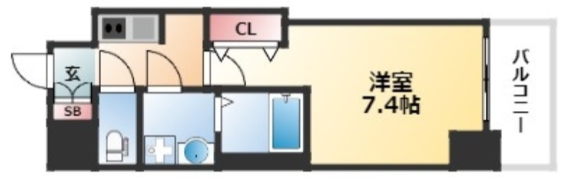 | 1K | 洋室 7.4畳 | 25.01㎡ |