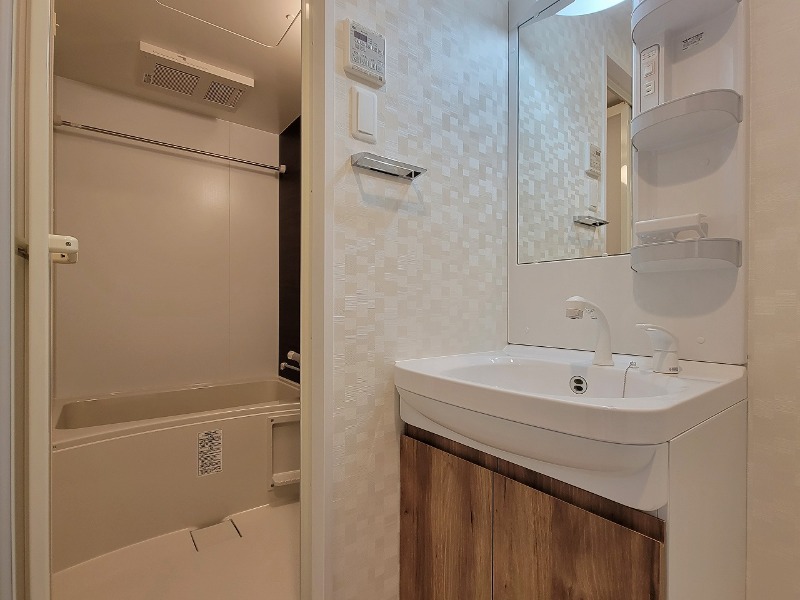 | 設備 | ガス(都市ガス)、インターホン(TVモニター付き)、防犯カメラ、オートロック、宅配ボックス、専用ゴミ置き場(あり)、駐輪場、日当り良好、眺望良好、フローリング、全居室フローリング、ベランダ・バルコニー、収納スペース、クローゼット、クローゼット数(1)、下駄箱、バス・トイレ別(別室)、シャワー、浴室乾燥機、脱衣所、給湯、温水洗浄便座、ウォームレット、洗面台、洗面所独立、シャンプードレッサー、洗面所にドア、洗濯機置き場(室内)、コンロ設置済、コンロ口数(2)、コンロ種類(都市ガス)、システムキッチン、エアコン、エアコン台数(1)、24H換気システム、CATV、インターネット使用料無料 | ||