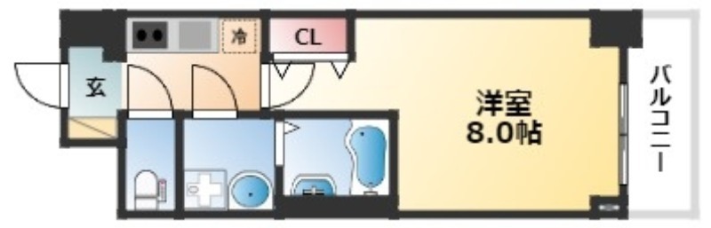 | 1K | 洋室 8畳 | 25.58㎡ |