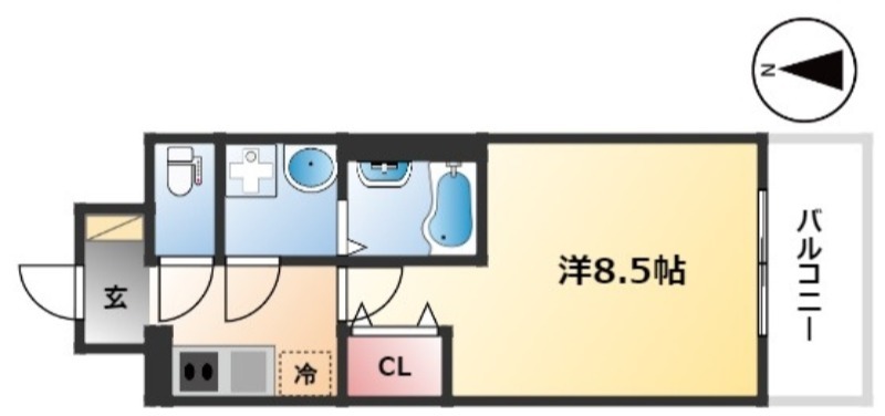 | 1K | 洋室 8.5畳 | 25.61㎡ |