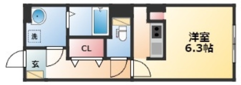 | ワンルーム | 洋室 6.3畳 | 27.14㎡ |