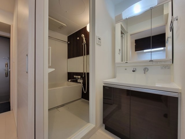 | 設備 | ガス(都市ガス)、インターホン(TVモニター付き)、防犯カメラ、ディンプルキー、オートロック、宅配ボックス、専用ゴミ置き場(あり)、駐輪場、バイク置き場、デザイナーズ、フローリング、全居室フローリング、照明器具、ベランダ・バルコニー、収納スペース、クローゼット、クローゼット数(1)、トランクルーム、下駄箱、バス・トイレ別(別室)、シャワー、浴室乾燥機、脱衣所、給湯、温水洗浄便座、ウォームレット、洗面台、洗面所独立、シャンプードレッサー、三面鏡付き洗面化粧台、洗面所にドア、洗濯機置き場(室内)、コンロ口数(2)、コンロ種類(都市ガス)、システムキッチン、エアコン、エアコン台数(1)、24H換気システム、BS、インターネット使用料無料 | ||