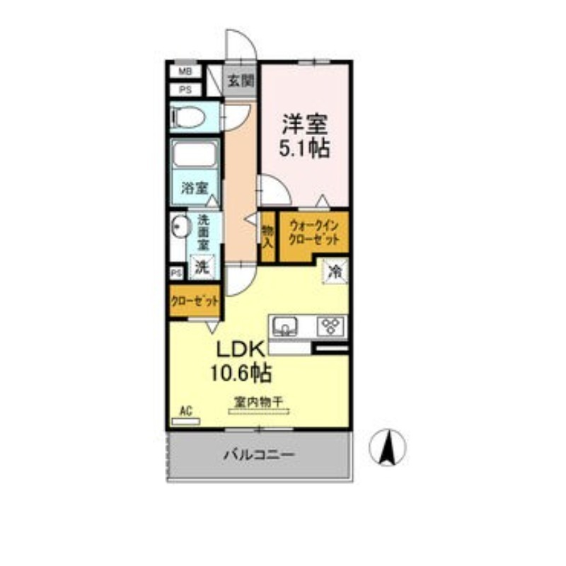 | 間取り詳細 | LDK 10.6畳 、 洋室 5.1畳 |