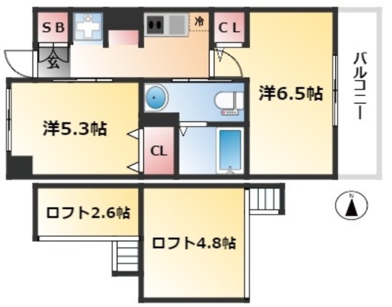 | 間取り詳細 | 洋室 6.5畳 、 洋室 5.3畳 、 その他 4.8畳 |