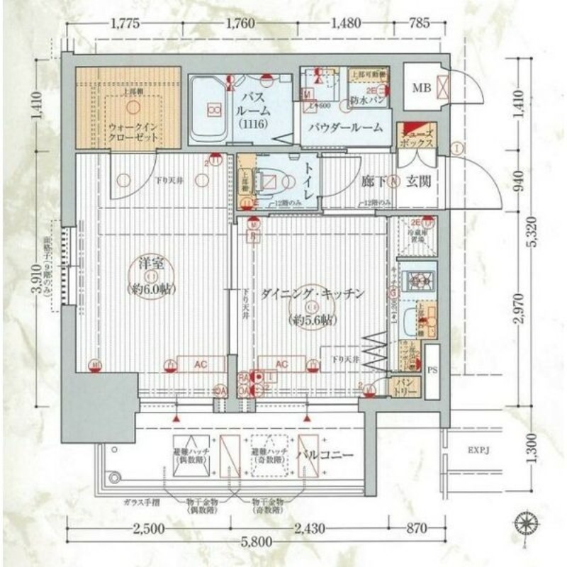 洋室 6畳 、 DK 5.6畳