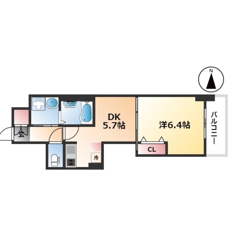 | 間取り詳細 | DK 6.4畳 、 洋室 5.7畳 |