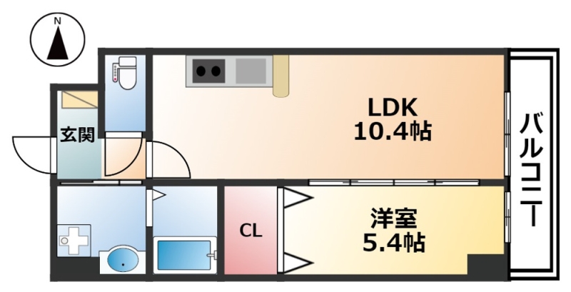 | 間取り詳細 | LDK 10.4畳 、 洋室 5.4畳 |