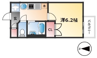 | 1K | 洋室 6.2畳 | 20.33㎡ |
