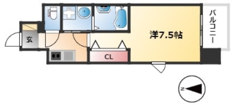 | 1K | 洋室 7.5畳 | 24.39㎡ |