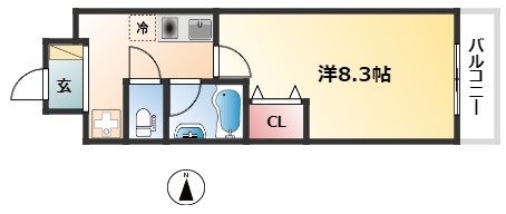 | 1K | 洋室 8.3畳 | 24.16㎡ |