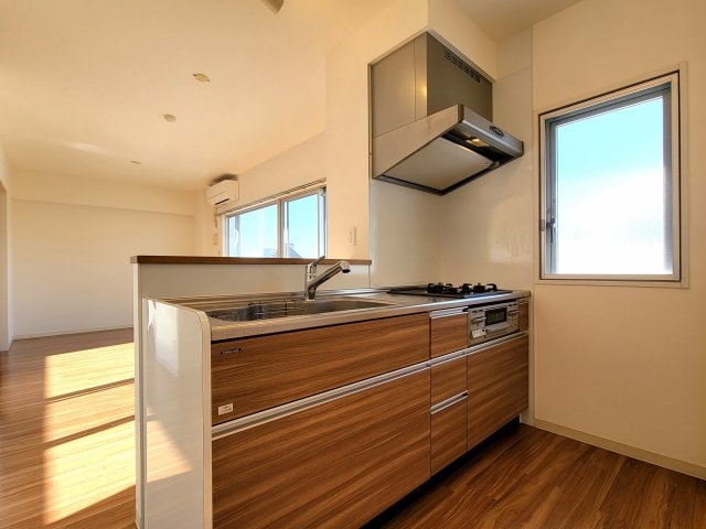 | 設備 | ガス(プロパン)、インターホン(TVモニター付き)、防犯カメラ、ディンプルキー、オートロック、宅配ボックス、専用ゴミ置き場(あり)、駐輪場、日当り良好、2面採光、南向きリビング、角部屋、通風良好、フローリング、全居室フローリング、ベランダ・バルコニー、2面バルコニー、収納スペース、クローゼット、クローゼット数(3)、下駄箱、バス・トイレ別(別室)、シャワー、追い焚き、浴室乾燥機、脱衣所、給湯、温水洗浄便座、ウォームレット、洗面所独立、シャンプードレッサー、洗面所にドア、洗濯機置き場(室内)、コンロ設置済、コンロ口数(3)、コンロ種類(プロパン)、グリル、システムキッチン、カウンターキッチン、対面キッチン、エアコン、エアコン台数(1)、24H換気システム、CATV、インターネット使用料無料 | ||