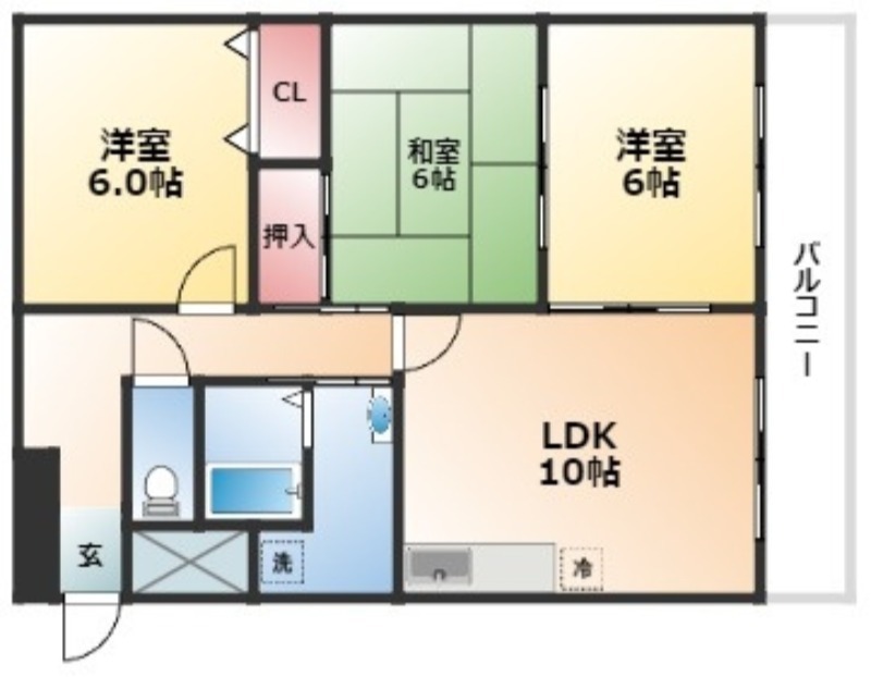 | 間取り詳細 | LDK 10畳 、 洋室 6畳 、 洋室 6畳 、 和室 6畳 |