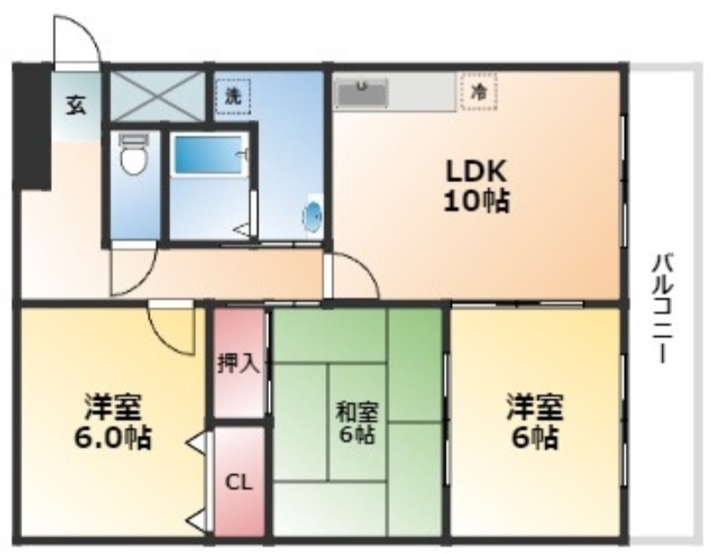 | 間取り詳細 | LDK 10畳 、 洋室 6畳 、 洋室 6畳 、 和室 6畳 |