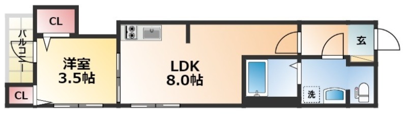 | 間取り詳細 | LDK 8畳 、 洋室 3.5畳 |